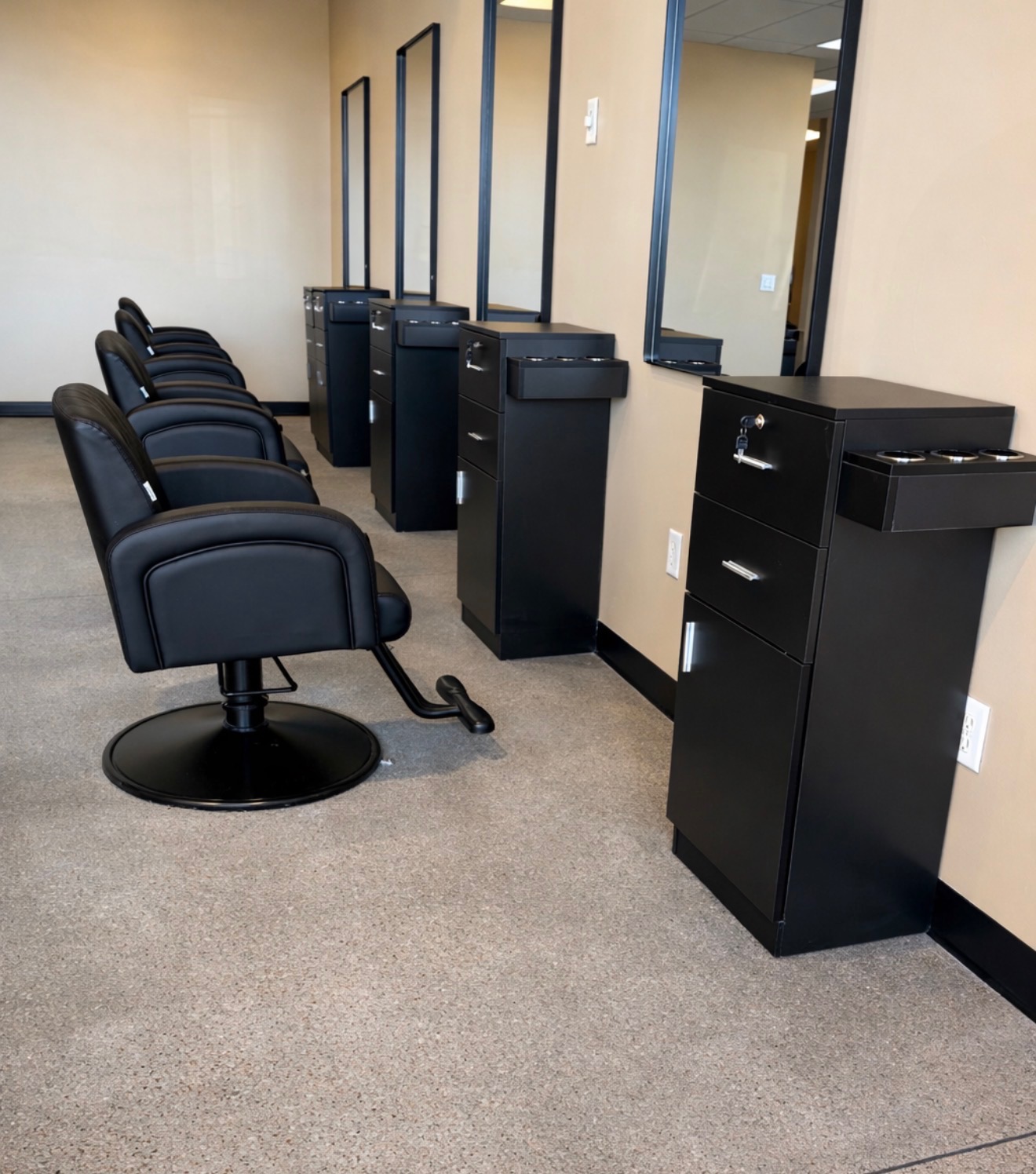 We are an open concept salon where you get the feel of a fun, busy salon but still be your own boss! When talking with professionals and clients, one of the biggest comment we got was “ I miss the feel of a salon, I miss being able to talk to my colleagues and other clients. I don’t like being stuck in a small quiet room alone”. We heard what they said and ran with it. Our Papillion location has 8 stations to make your very own, where you can enjoy talking to each other, coming up with other creative ideas, and just simply learning from each other. Clients will enjoy the fun atmosphere, being able to chat with other clients and just all around enjoy the experience.